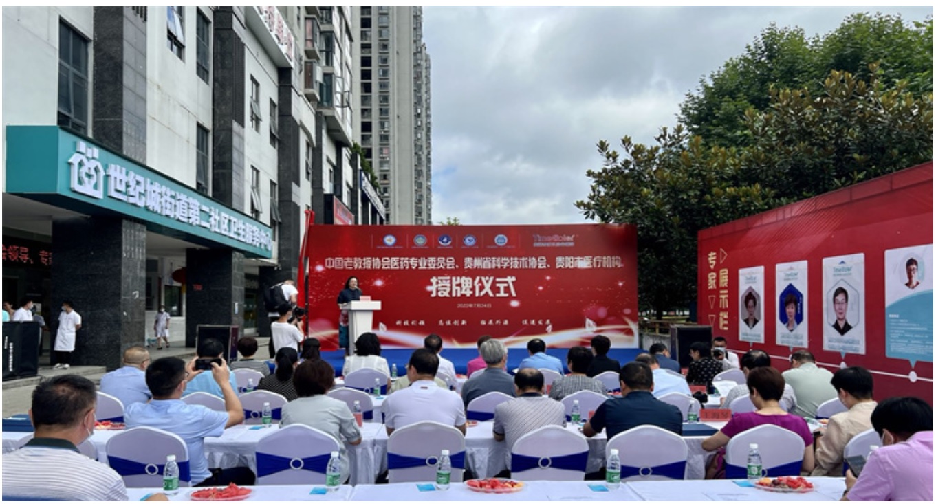 授牌仪式上,贵阳泰康乐综合医院和世纪城街道第二社区卫生服务中心被授予“中国老教授协会医药专业委员会技术支持单位”,贵州省科学技术协会也向泰康乐医院授牌“院士专家创新工作站”、“科技工作者之家”、“科学技术协会”。